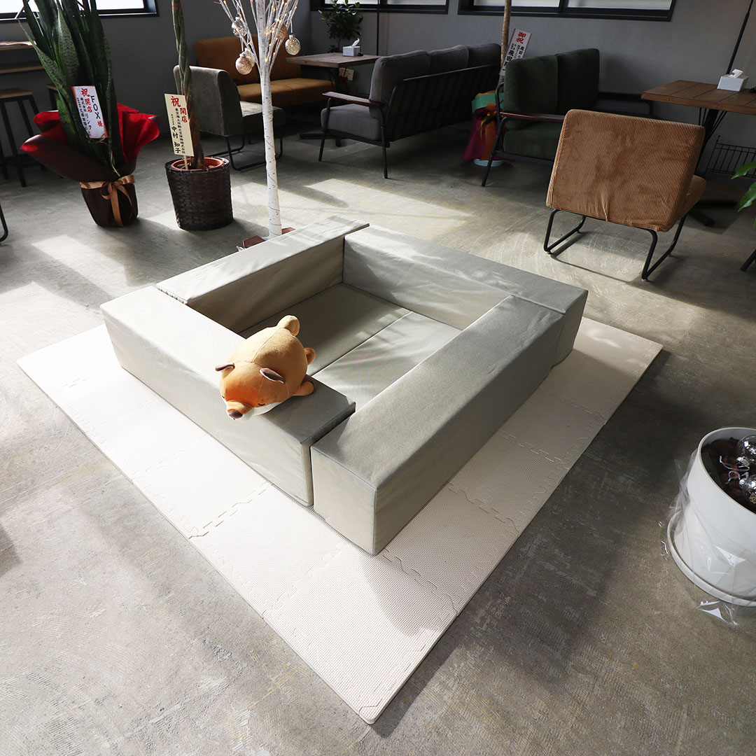 落ち着いたカラーのソファや植物を配置した、心地よい打合せルームにはお子様連れでも安心できるキッズスペースを中央に設置。
