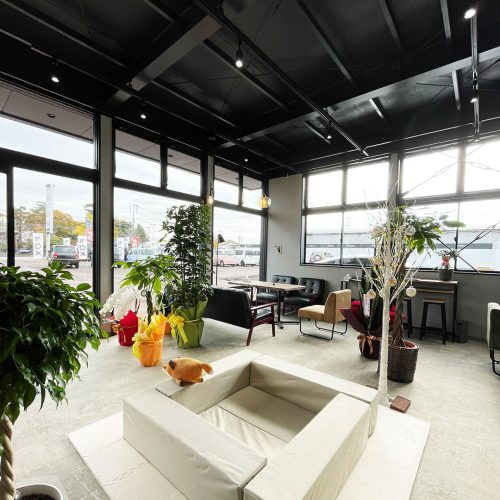 信頼感を感じる外観とカフェのような店内のカーショップ